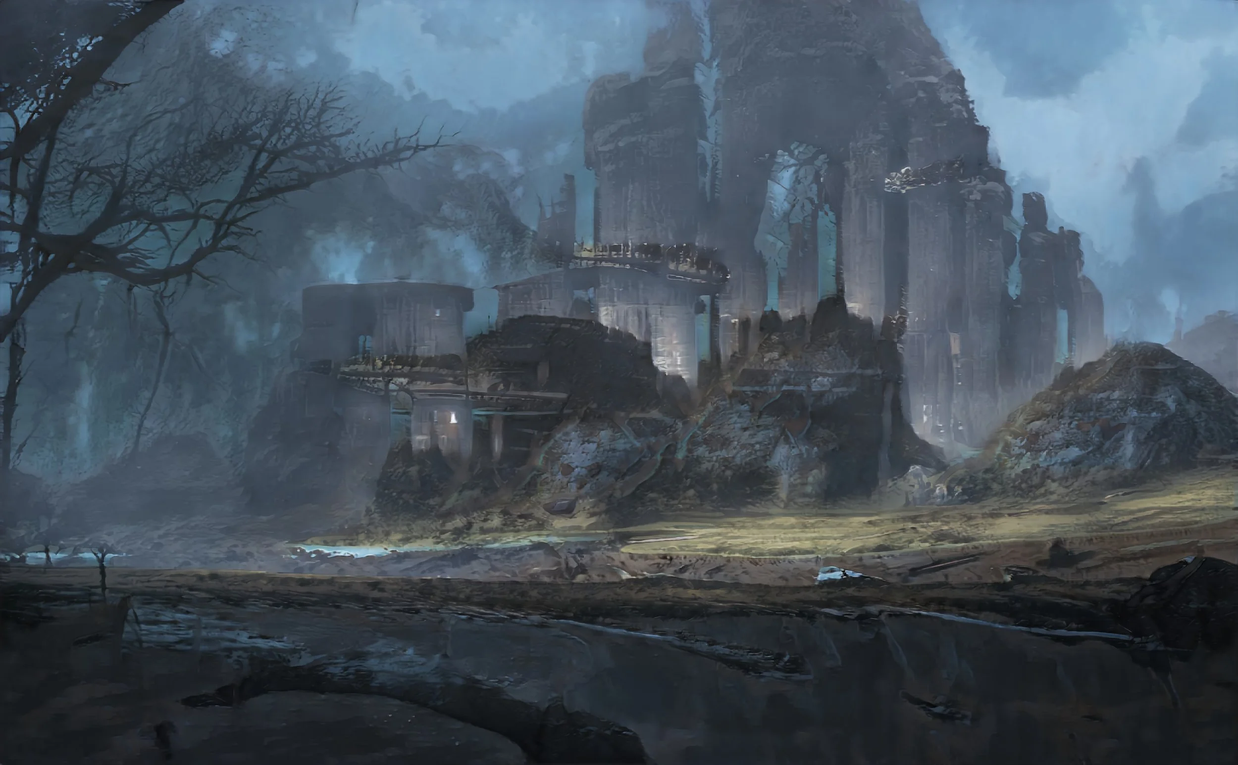Built upon the hills along the now dried riverbed, the Hallowed Acropolis stores the blood remnants of the Devoured God, Lucinda. Within its winding halls lies a vast library of the records and tomes salvaged from Lucinda’s athenaeum. The library holds the works of Lucinda’s scholars. The works were seized as the chaotic celebrations of the God’s death slowly engulfed the palace, the first members of the house of Mourning sought out the precious works. which depict ancient practices of curses, medicinal salves and, most importantly, the treasured tomes of Alignmentos; being able to fold space and time upon itself